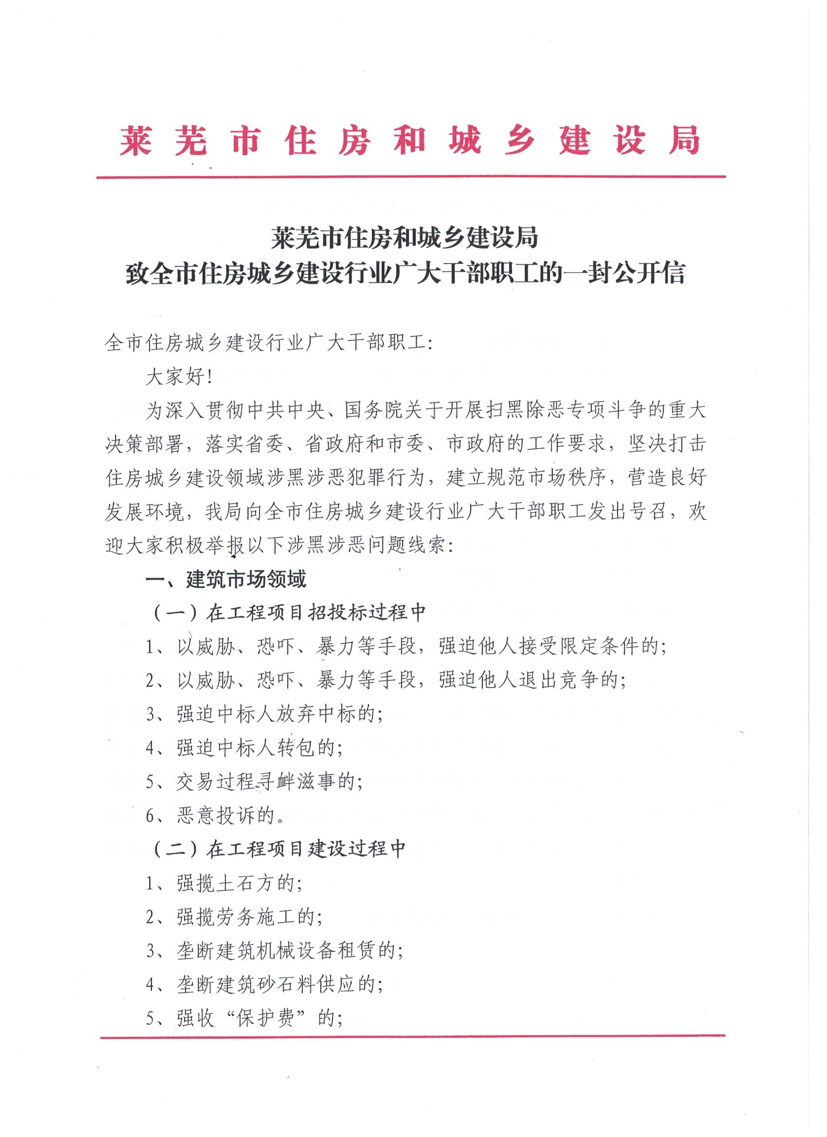致全市住房城乡建设行业广大干部职工的一封公开信